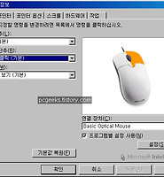 연결 장치 에서 MS제품 중 하나를 고릅니다. 그냥 (휠포함) 3버튼 휠마우스라면 그림처럼 버튼 3개만나오는 녀석으로 고릅니다. 각 버튼(단추)의 기능을 고를 수 있습니다.