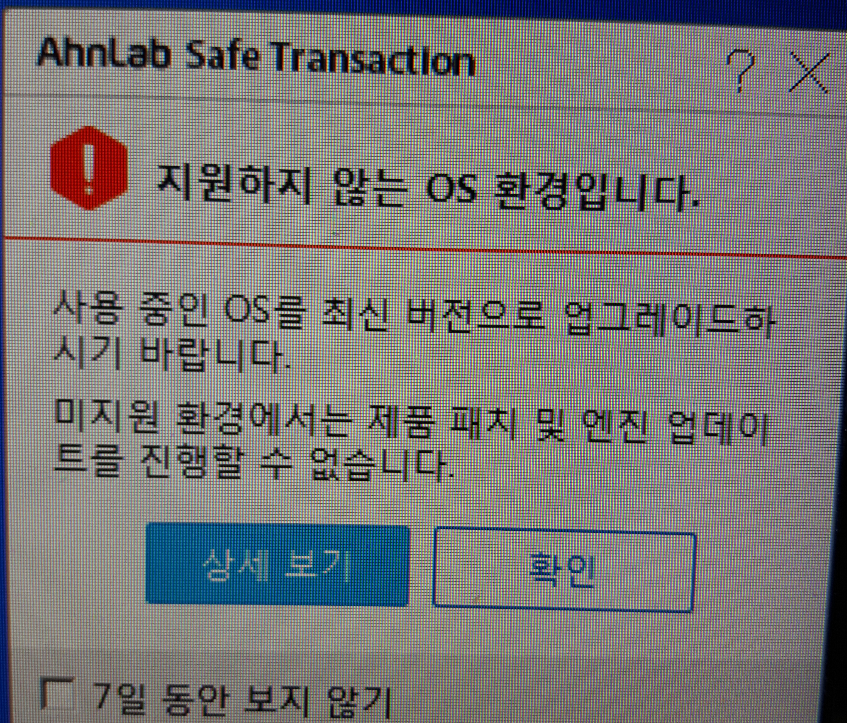 안랩 세이프 트랜잭션(AhnLab Safe Transaction; AST) 윈도우7 거부증상: 운영체제 업그레이드 요구 없애기 본문