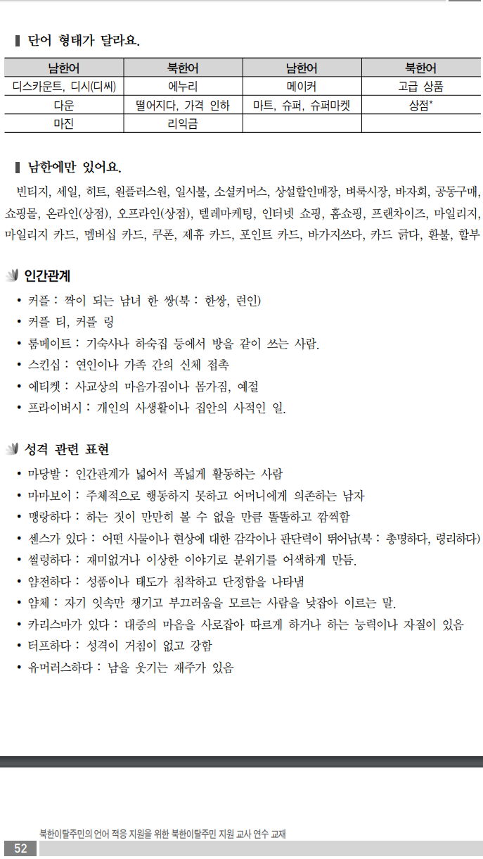 북한 이탈주민의 언어 적응 지원을 위한 북한 이탈주민 교사연수교재 (2014)