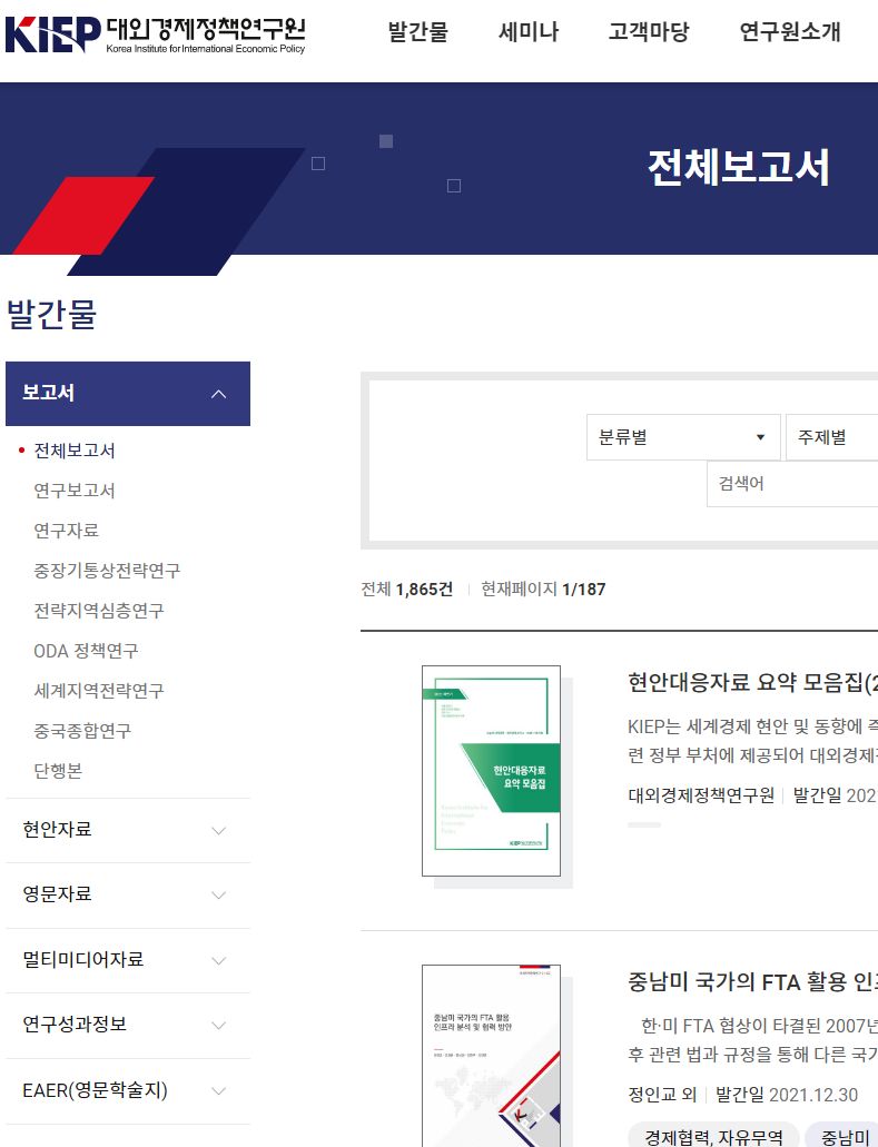 대외경제정책연구원(KIEP) 발간물: 보고서 등 본문