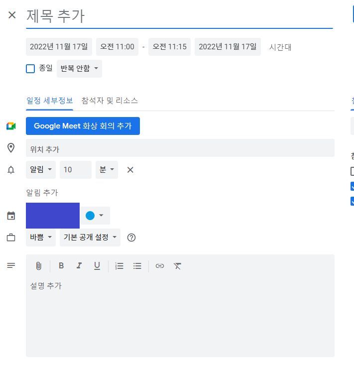 구글 캘린더 일정작성화면 개선희망점:아이템 순서 본문