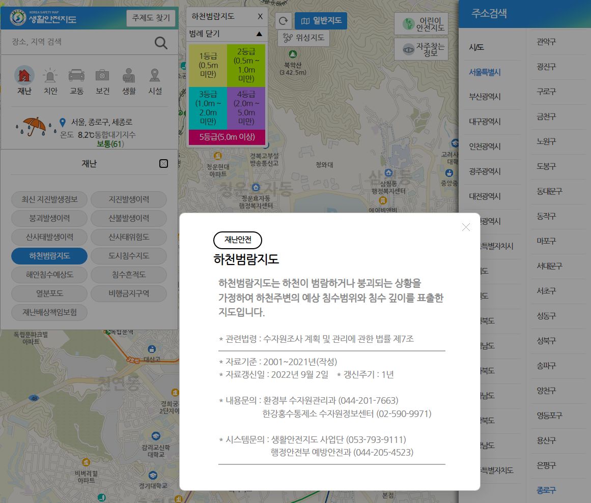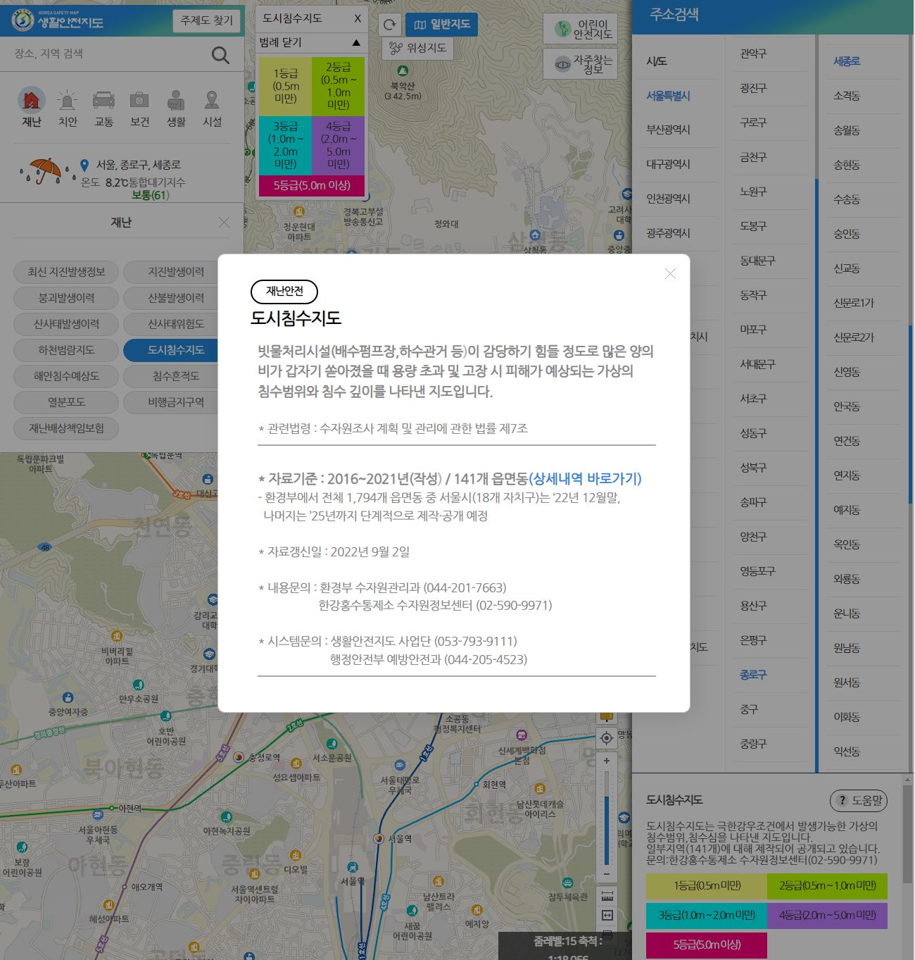 생활안전지도: 홍수위험지도, 하천범람지도, 도시침수지도 본문