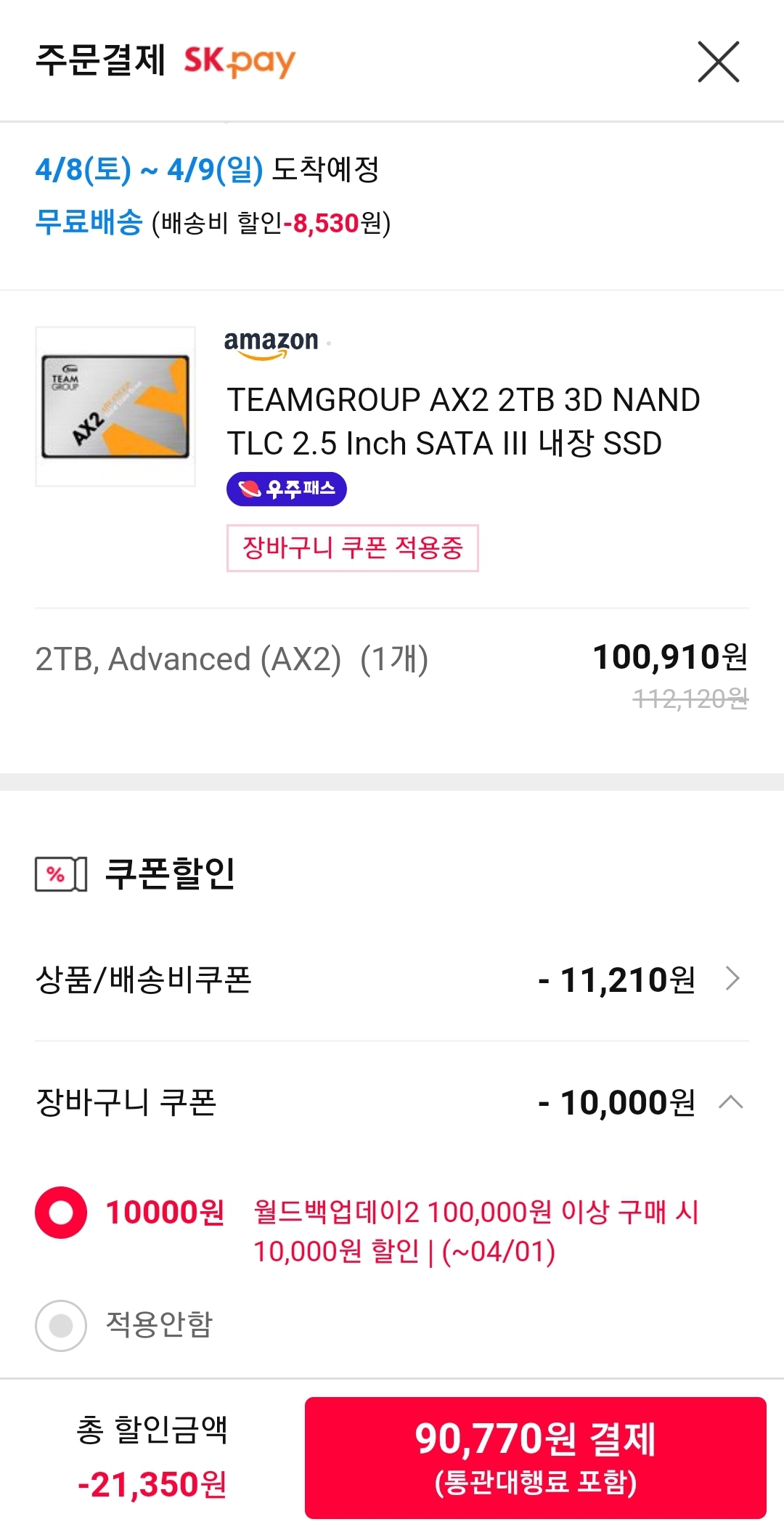 (11번가-아마존) 9.1만원짜리 2테라 SATA SSD 본문