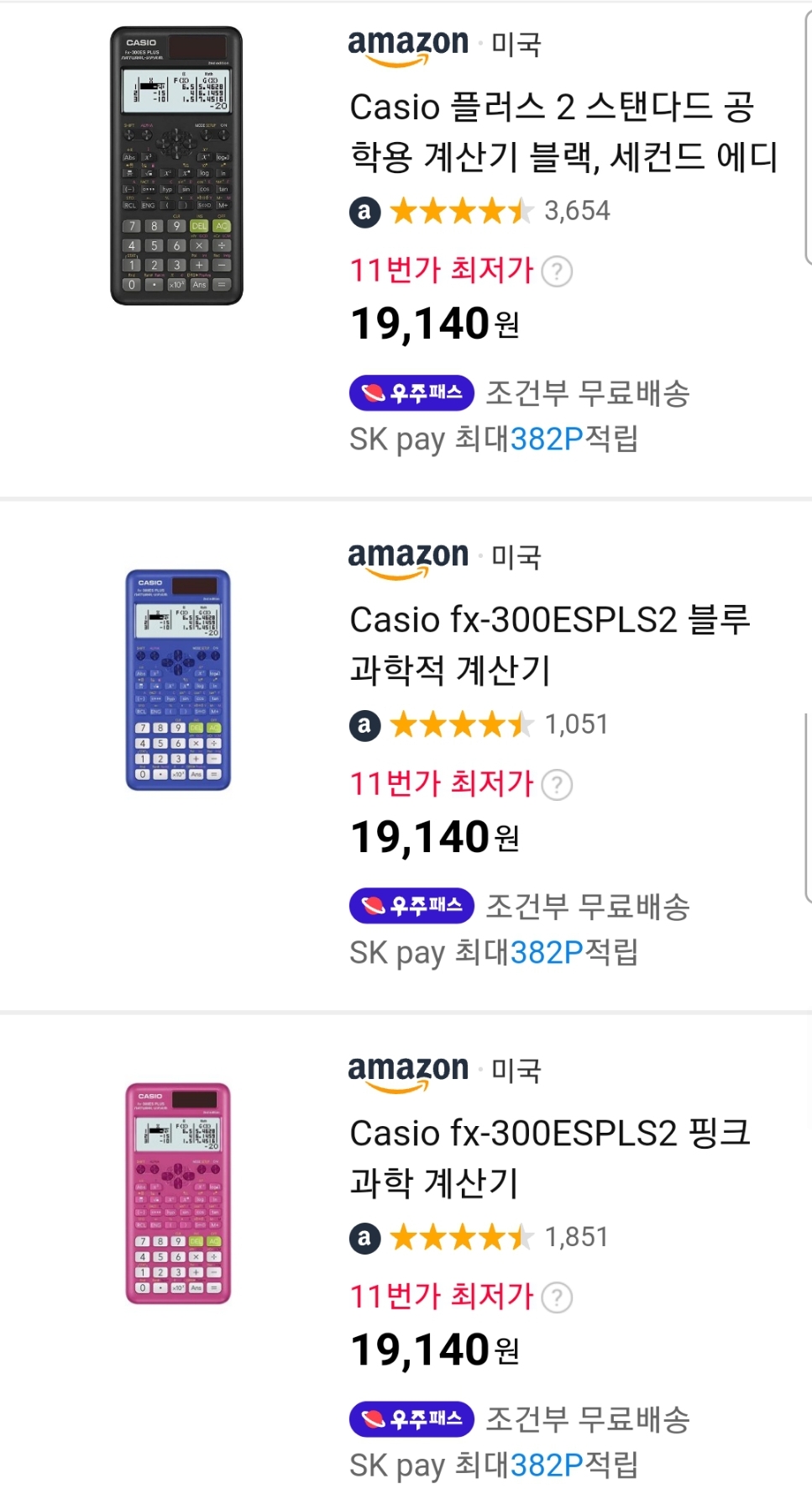 (11번가-아마존) Casio fx-300ES plus2 블랙/블루/핑크 (~1.9만원, 배송비).. 글쎄 본문