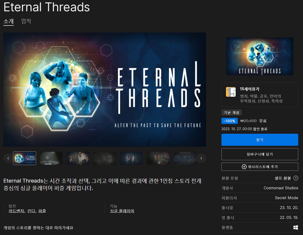 (에픽게임즈 무료게임) Eternal Threads 본문