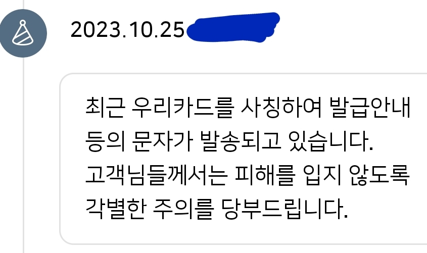 신용카드발급안내사칭 피싱문자 주의(우리카드) 본문