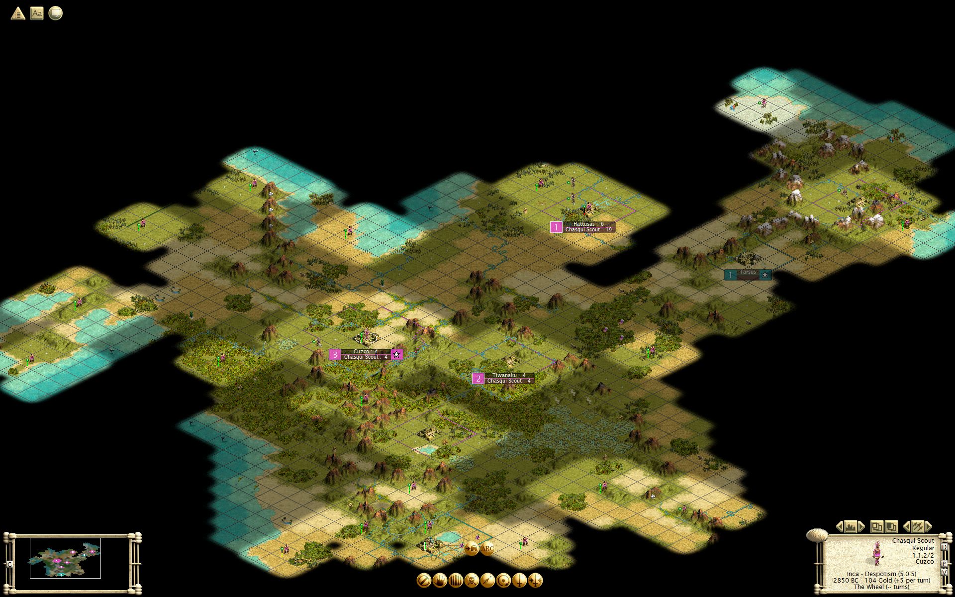 시작할 때 나오는 유닛이 세틀러/워커/스카웃인데, 워커는 경작하거나 도로를 짓지 말고 탐험용으로 사용한다. 그런 일은 노예워커에게 시킨다.