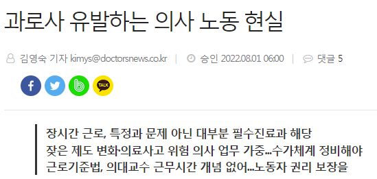 과로사 유발하는 의사 노동 현실 - 의협신문