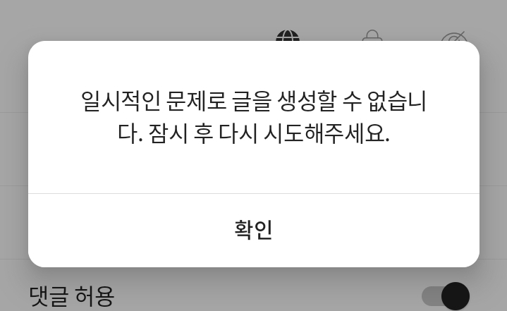 '일시적인 문제로 글을 생성할 수 없습니다'(티스토리 앱 에러) 본문