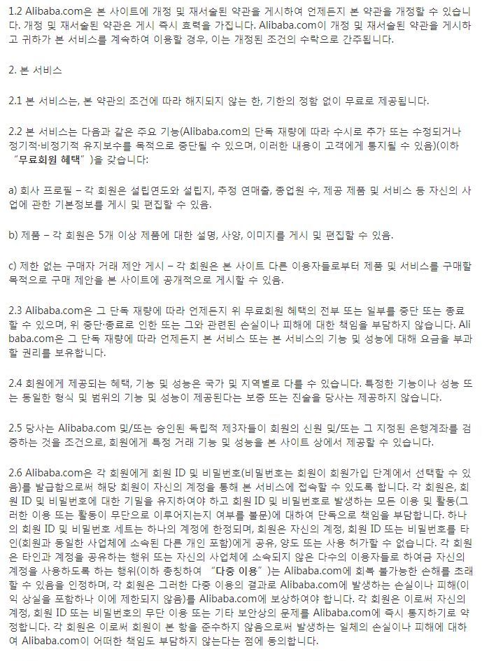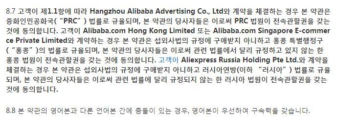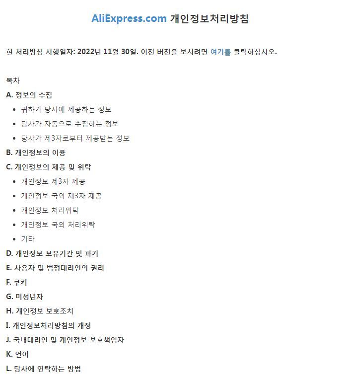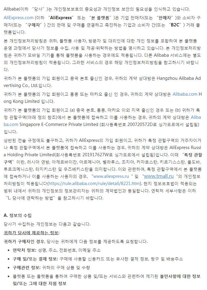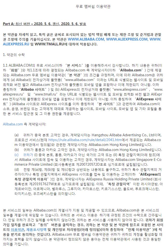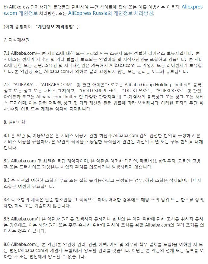 알리익스프레스( www.aliexpress.com ) 회원가입약관, 개인정보처리방침 약관 등 본문