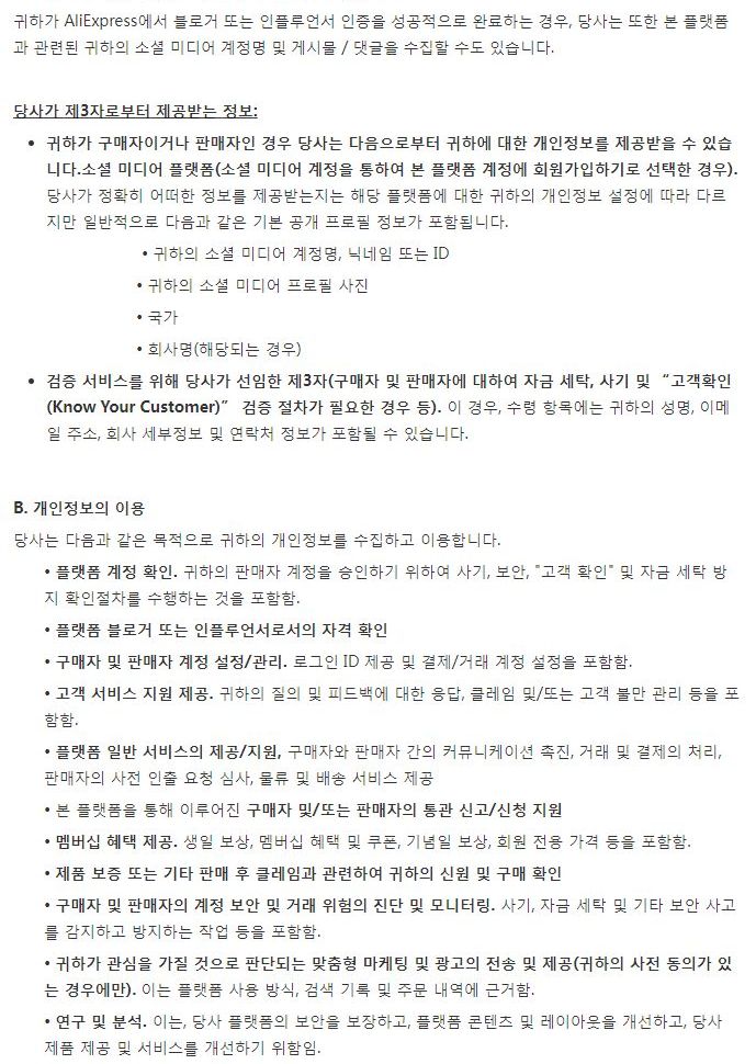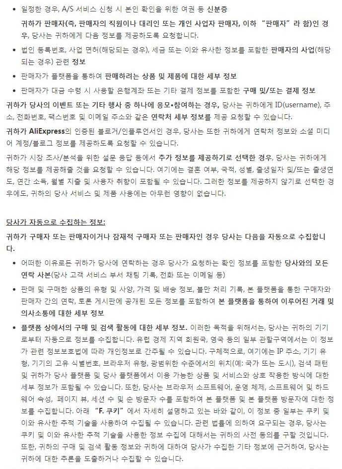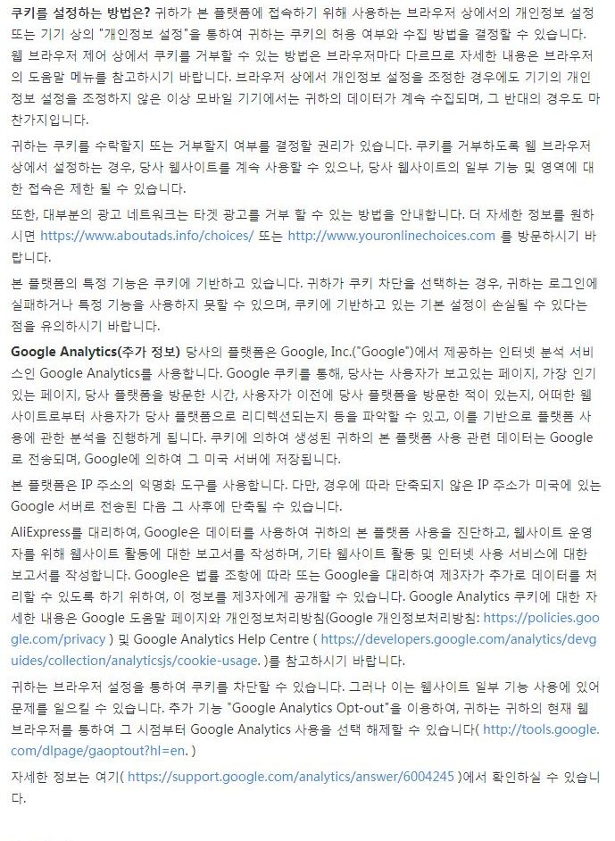 · 목적: AliExpress 플랫폼의 원활한 서비스 이용을 위한 정보