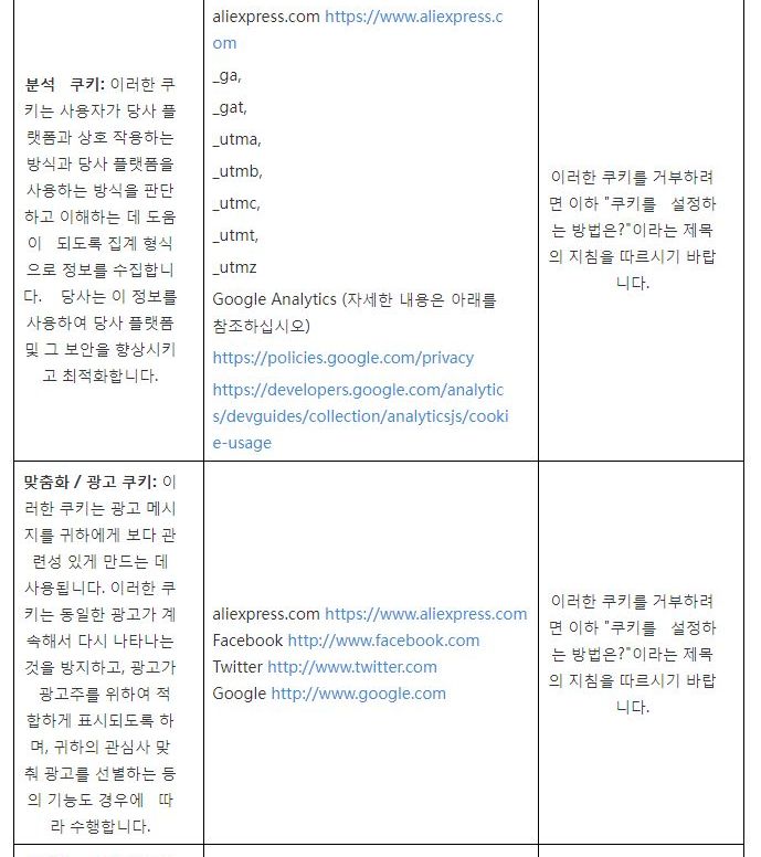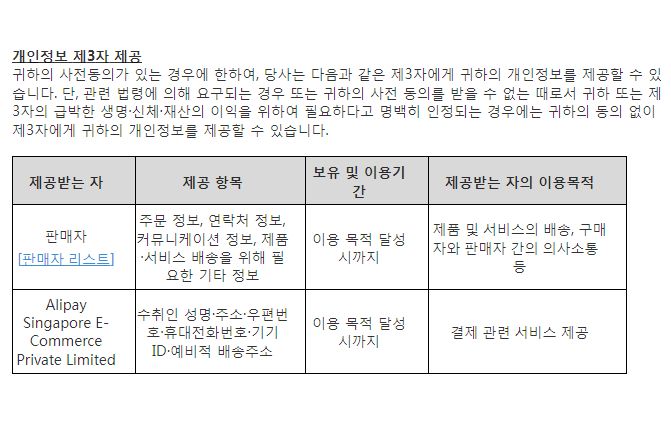 알리익스프레스는 아래와 같은 약관 동의를 받습니다.