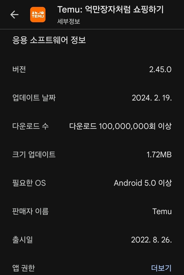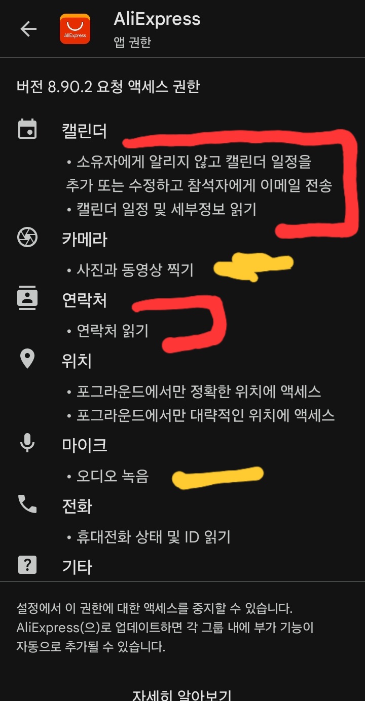 그리고 알리와 테무 모두, 당연하지만 다른 안드앱처럼, 앱 업데이트할 때 추가권한을 요구할 수 있습니다. 잘 모르고 ok하지 말고, 새 기능을 사용할 때 뜨는 팝업을 잘 볼 것.