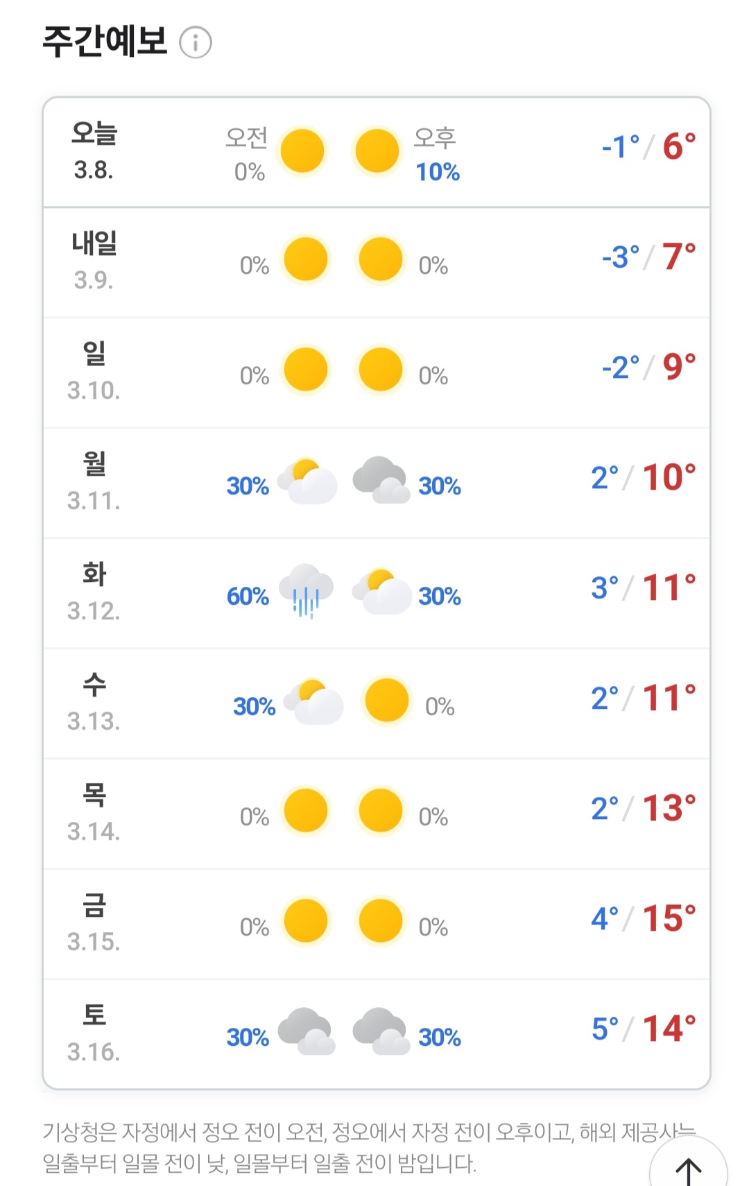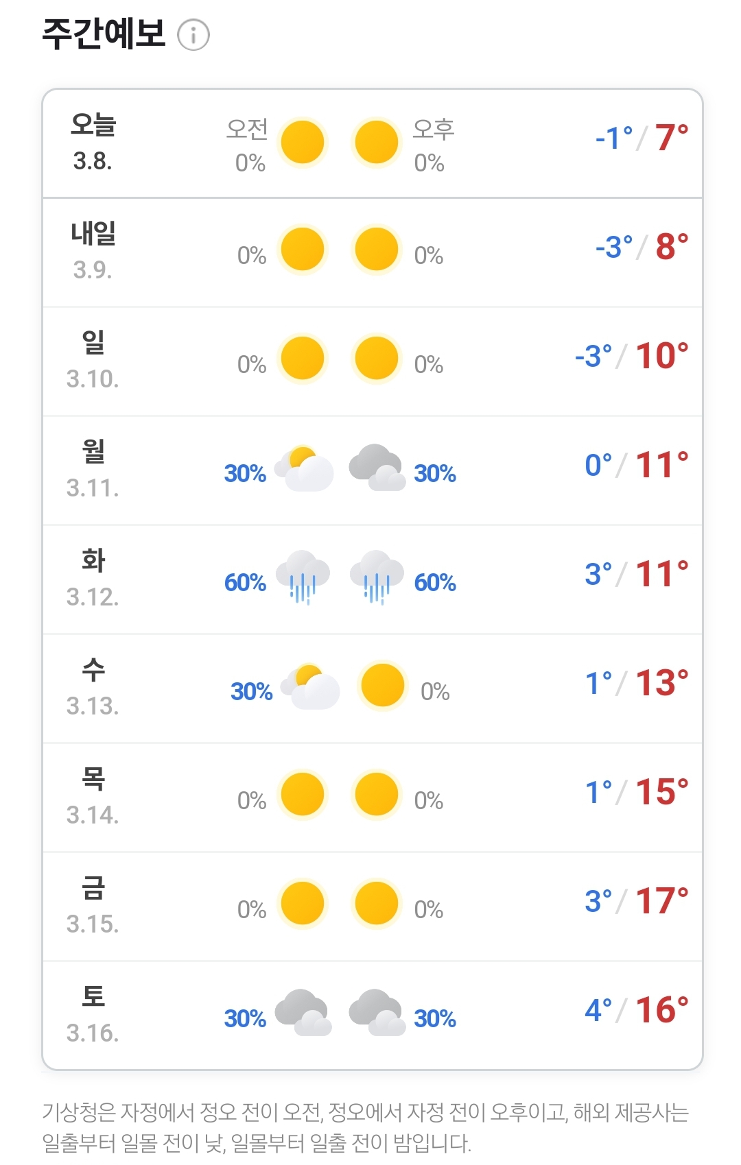 2024.3.8.(금) ~3.16 (토) 일기예보: 씨뿌리는 날씨로 기온이 쑥쑥 본문