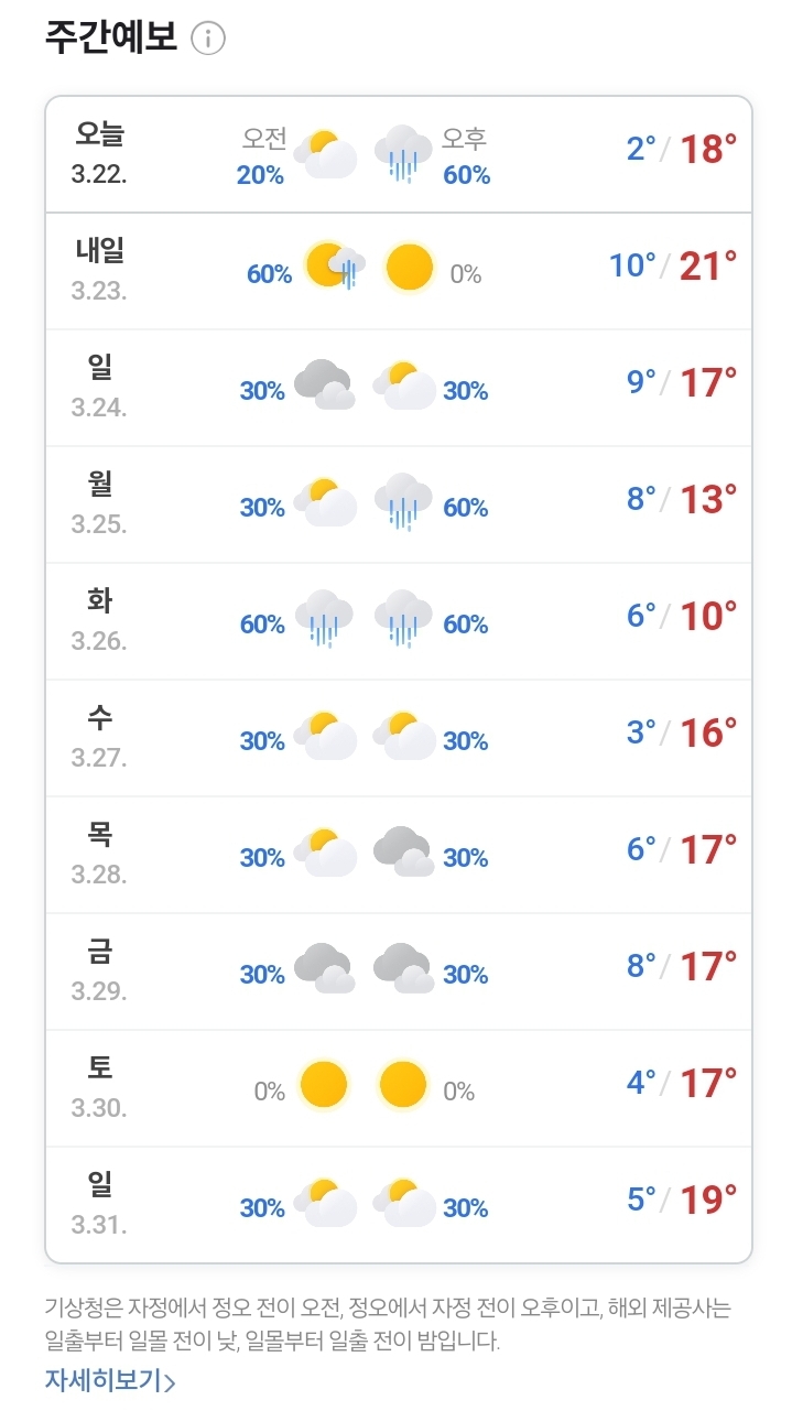 2024.3.23.(토) ~ 3.31.(일) 일기예보 본문
