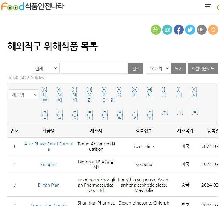 식품안전나라 해외직구 위해식품 목록