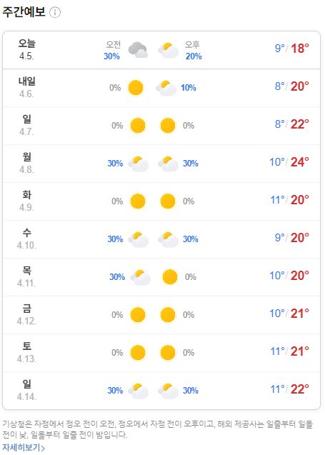 2024.4.5(금)~4.14(일) 일기예보: 건조한 날씨 본문