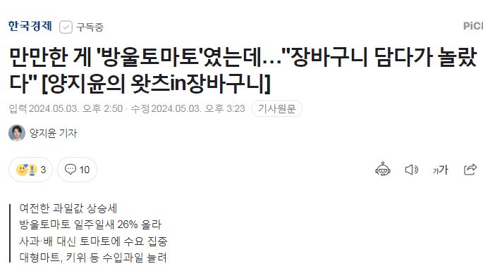 만만한 게 '방울토마토'였는데…"장바구니 담다가 놀랐다" [양지윤의 왓츠in장바구니]