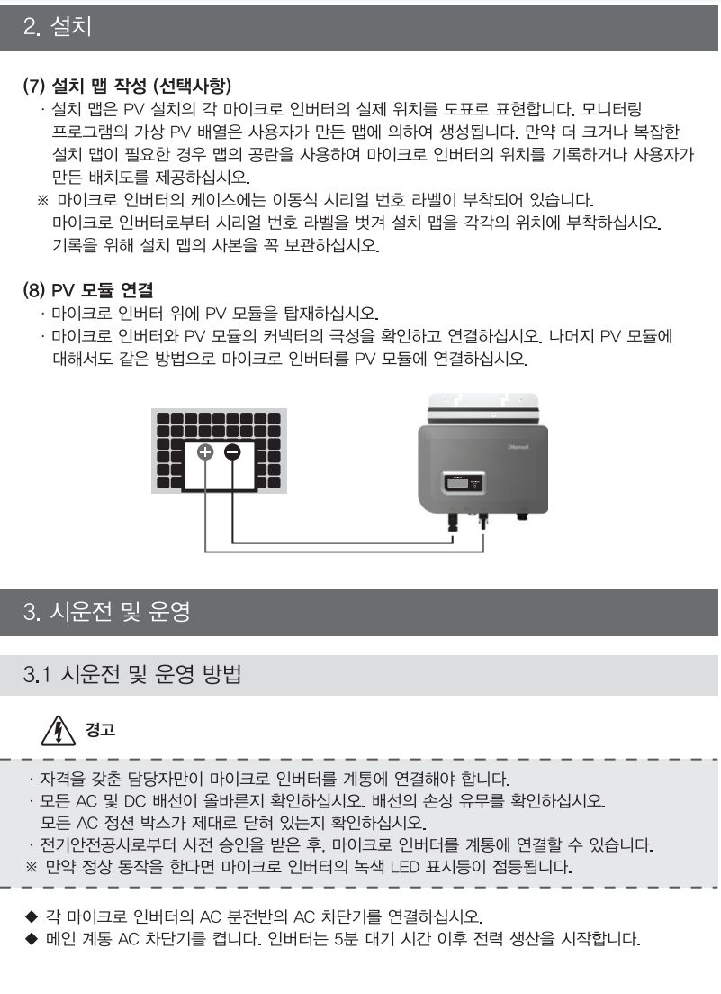 한솔테크닉스 아파트 베란다/주택 미니태양광 마이크로인버터(HSPV-K360) 설명서 본문