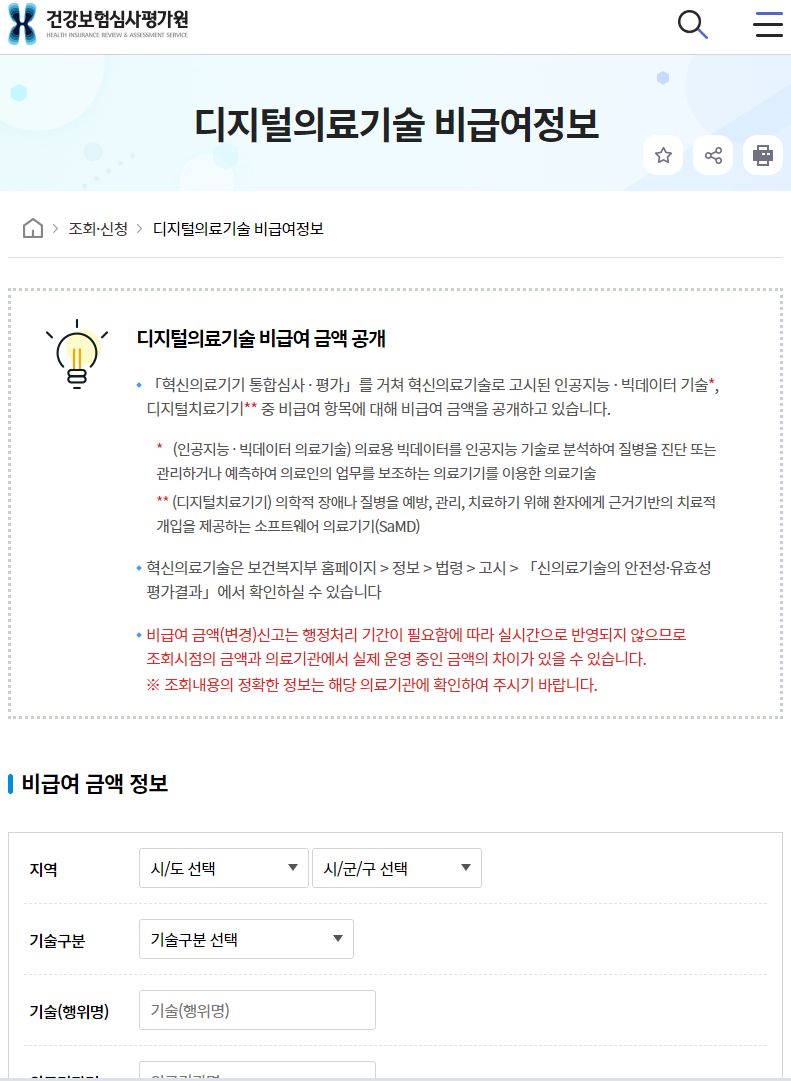 디지털의료기술 비급여정보