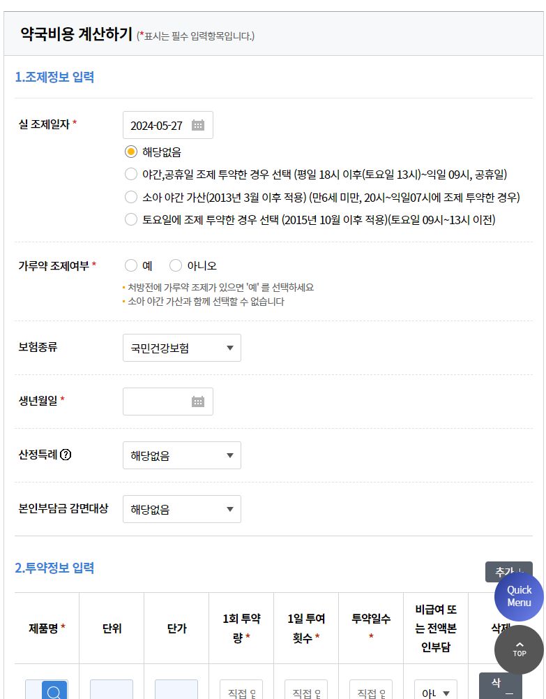 약국비용 계산기