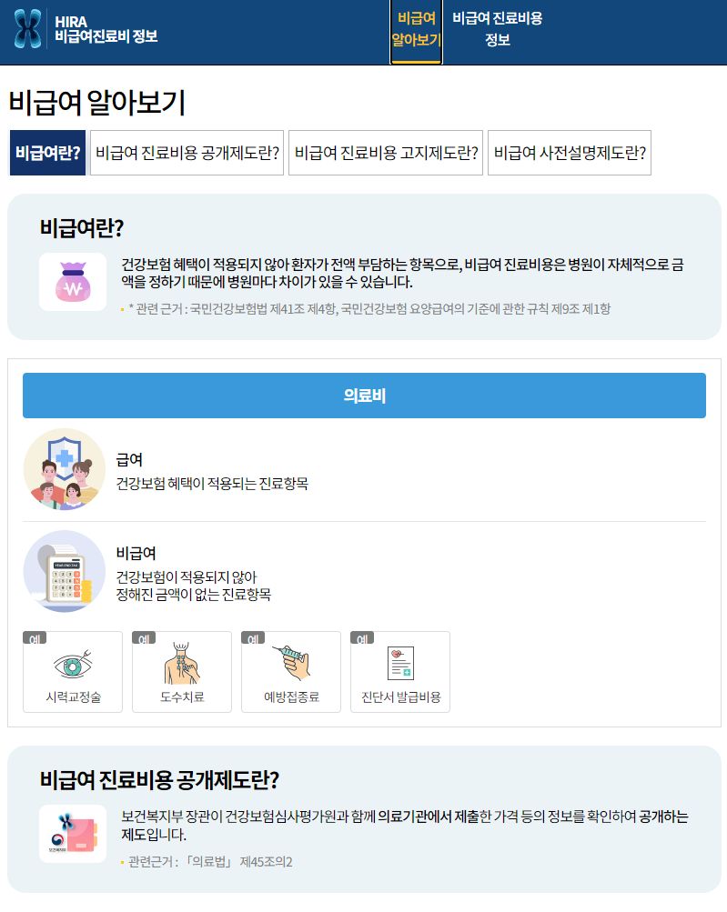 비급여진료비용정보 알아보기