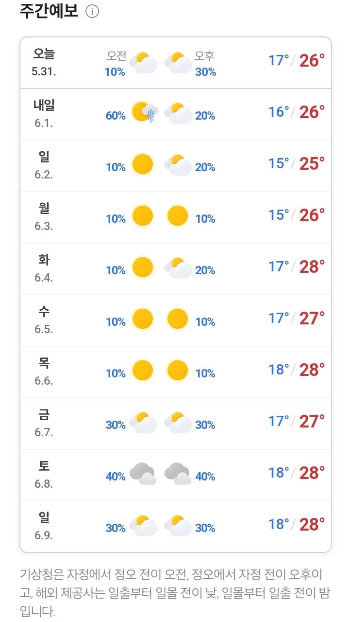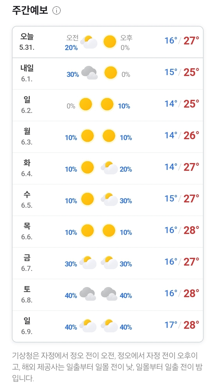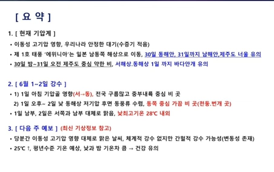 2024.5.31(목)~6.9(일) 일기예보 본문