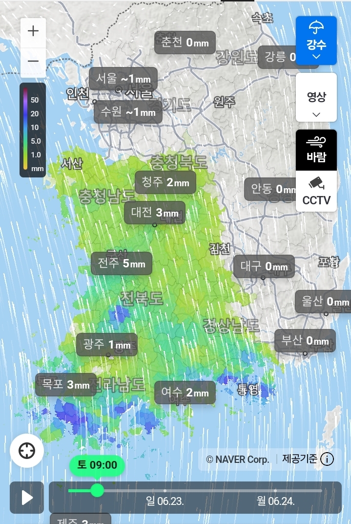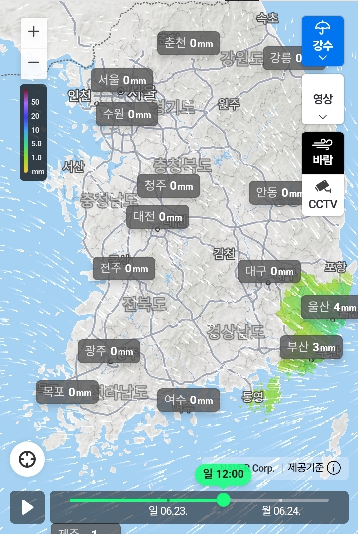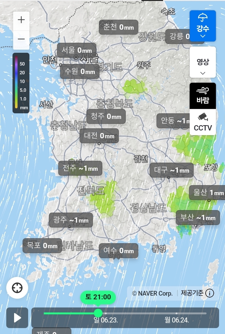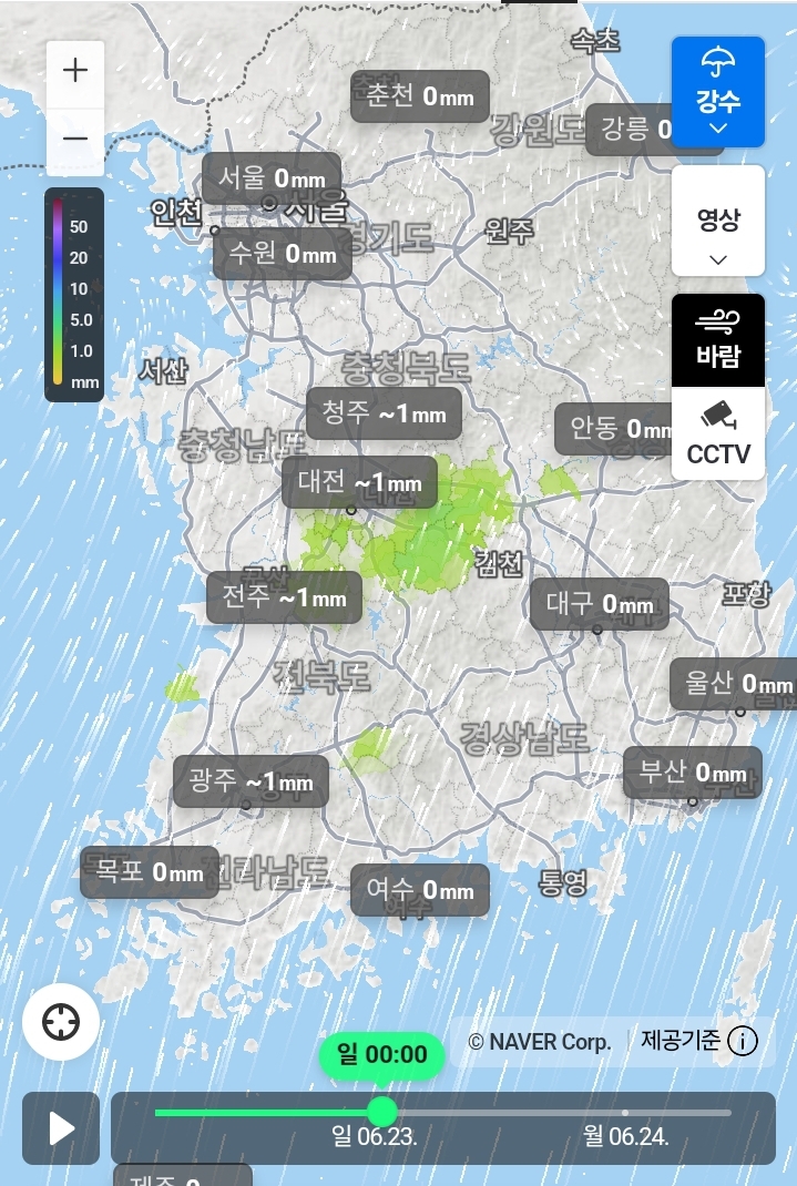 2024.6.22(토)-6.24(월)새벽까지의 전국 비 지도 본문