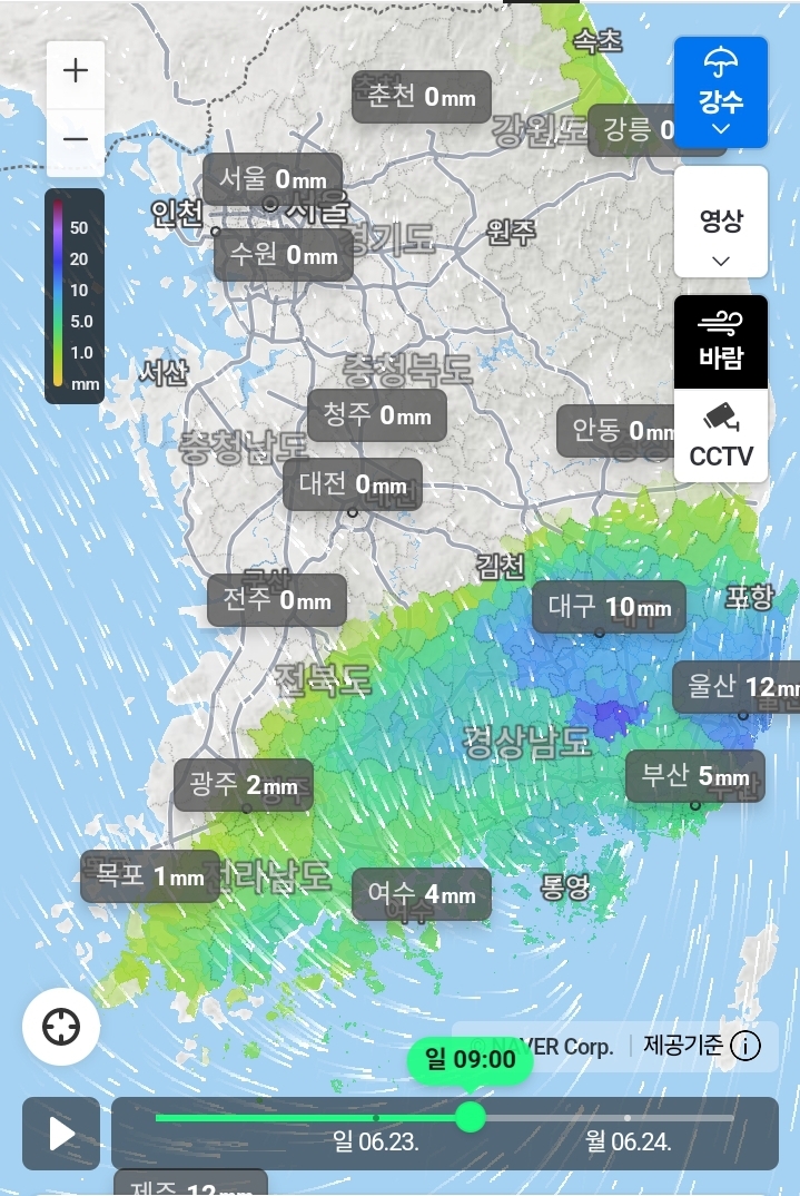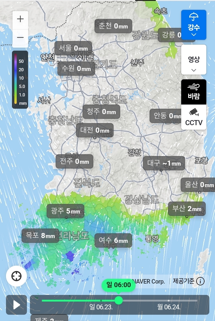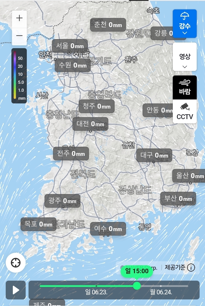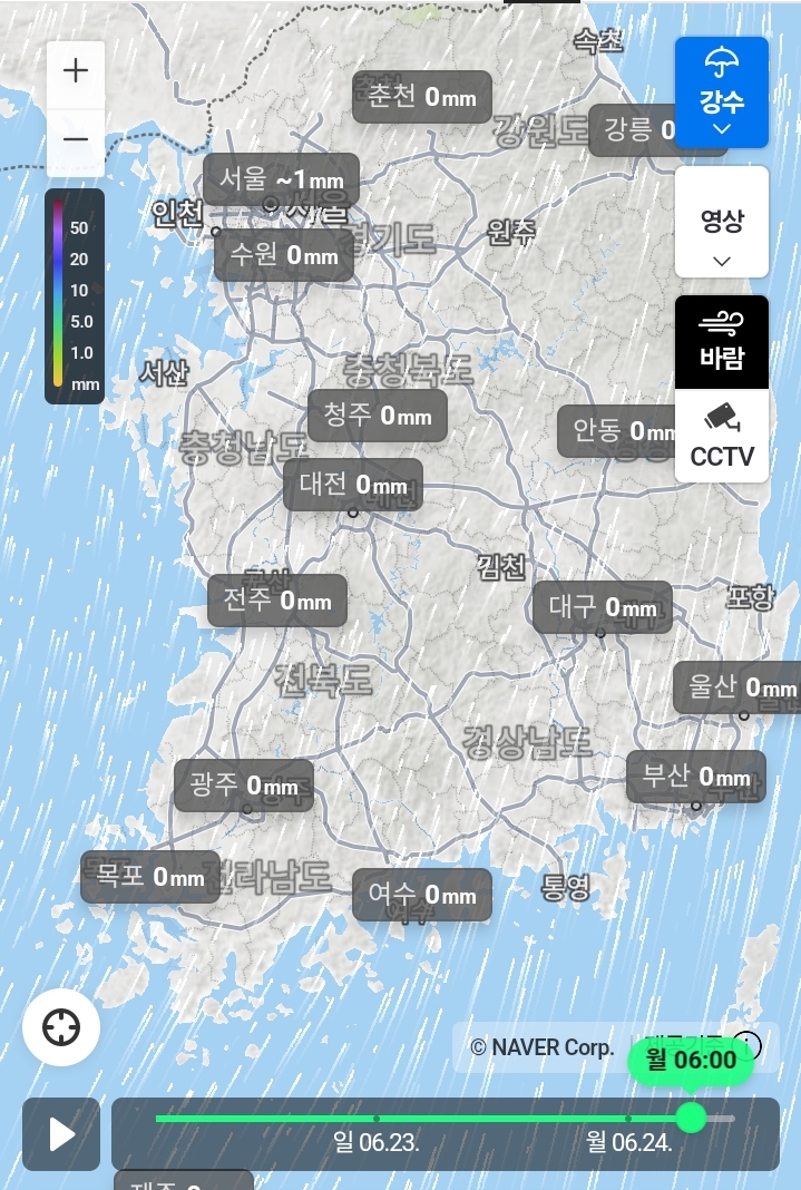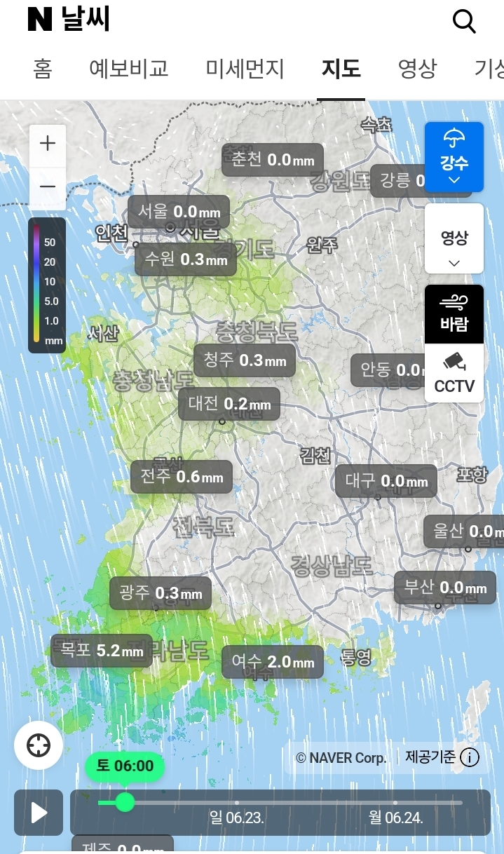 2024.6.22(토)-6.24(월)새벽까지의 전국 비 지도 본문