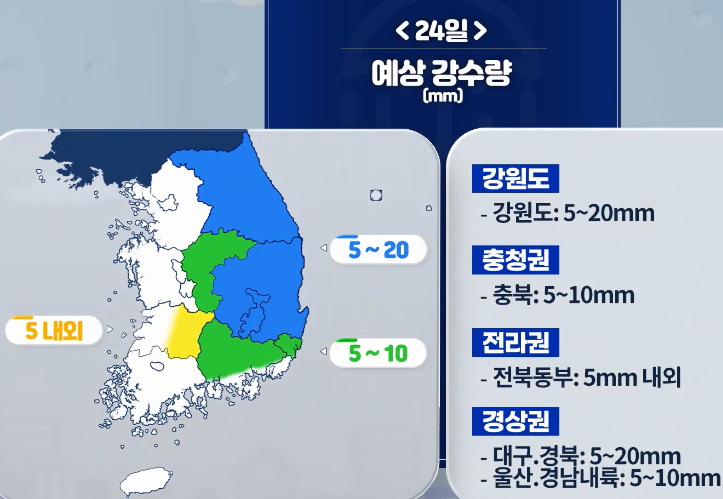 [내일날씨] 오늘 저녁까지 동쪽지역 중심으로 요란한 비 오는 곳 있어요~ 6월 24일 17시 기준