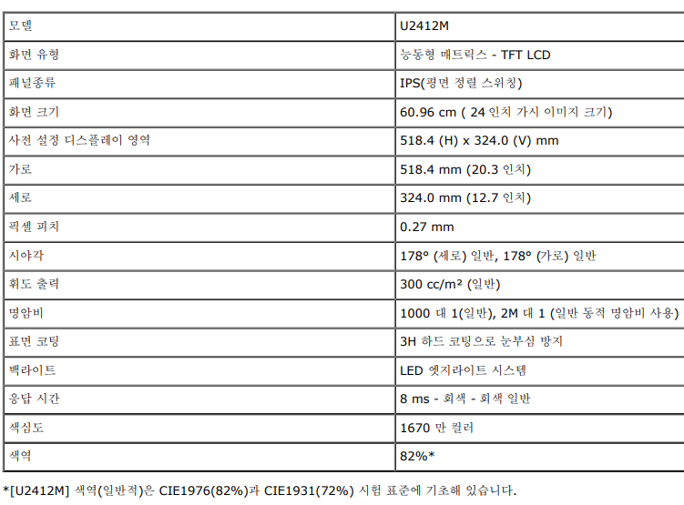 DELL 2412M LED모니터 제품사양관련 링크 조금 본문