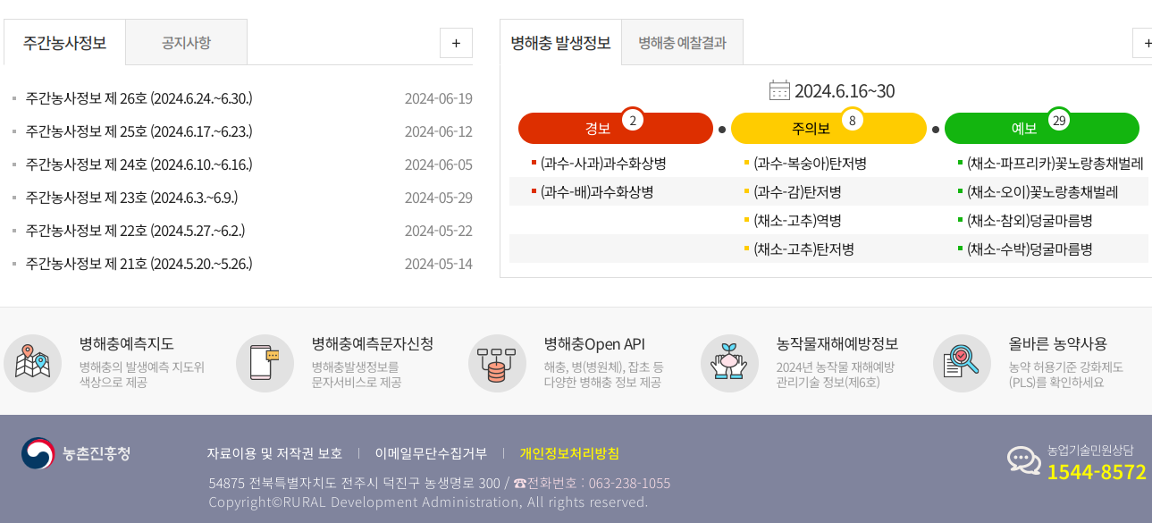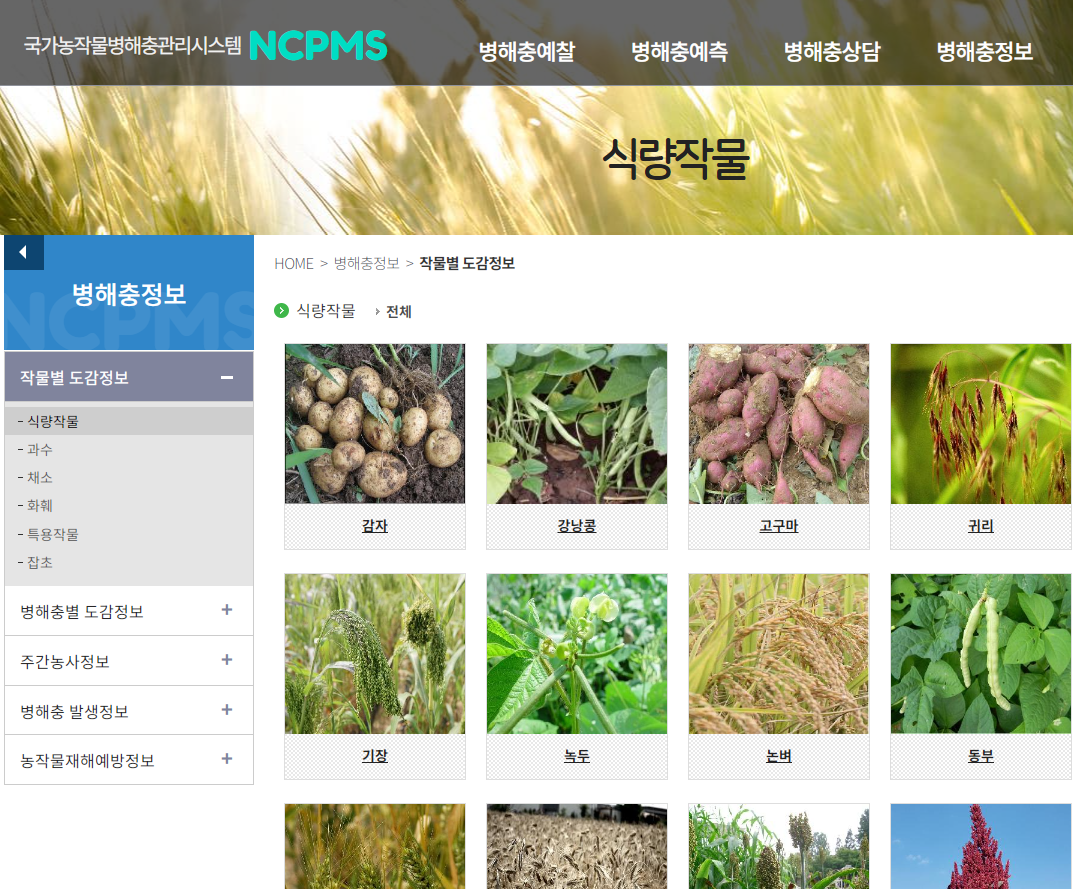 농촌진흥청 국가농장물병해충관리시스템 + 주간농사정보, 병해충 도감 본문