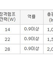 삼성 LED 홈페이지, LED 전구 사양표 본문