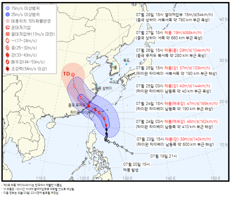 아직 필리핀해 해상에 있는 제3호 태풍 개미는 이번 주 중에 중국 남부에 상륙해 중국을 관통할 예정입니다.