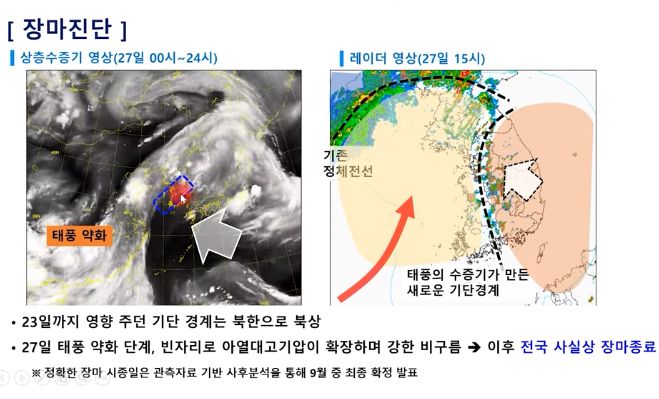 올해 장마가 끝난 것으로 분석됐다. 이후에는 35도 이상의 폭염과 함께 열대야가 이어질 것으로 전망된다. 기상청은 30일 브리핑에서 "태풍에 의한 기압계 변동성이 사라지고 당분간 아열대 고기