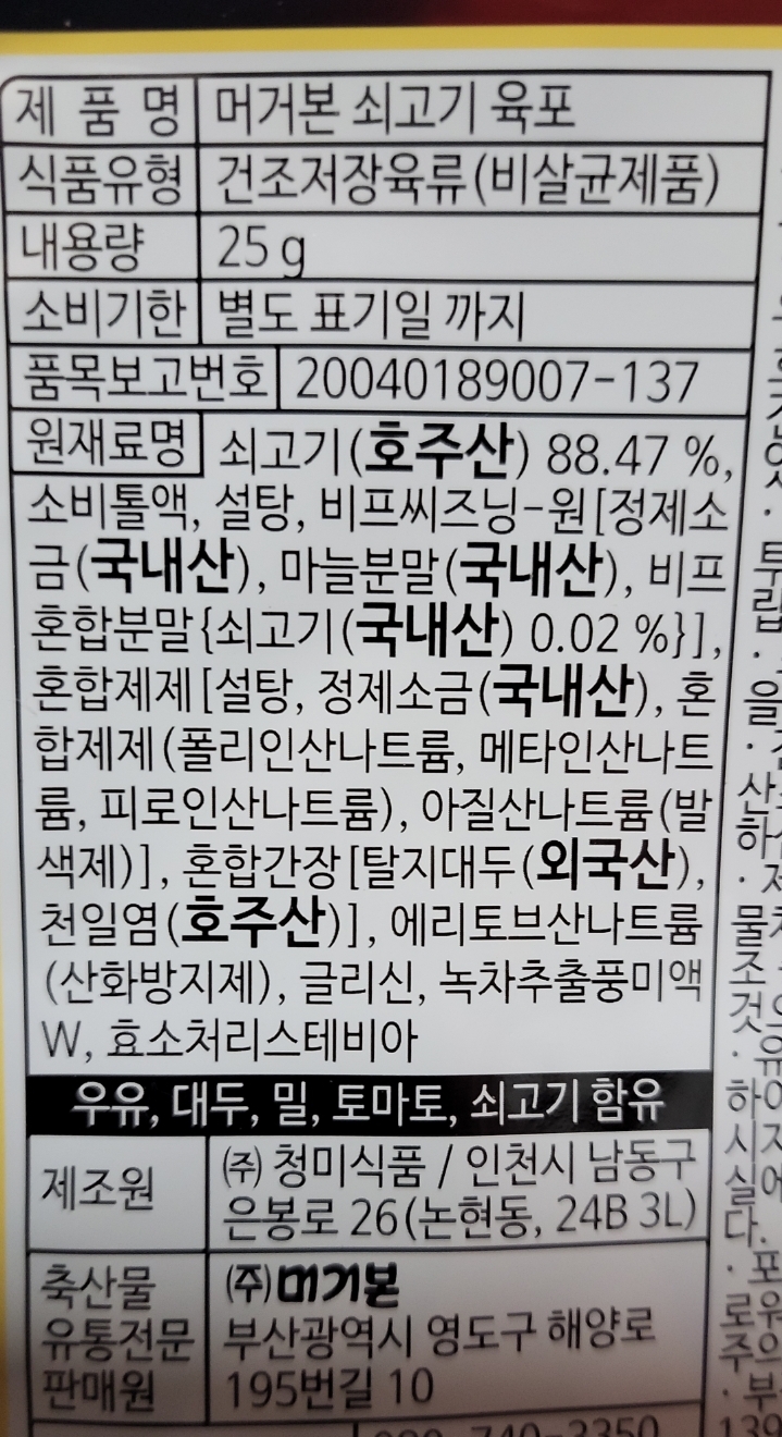 빨간 발색은 머거본이나 다른 브랜드나 이바지집 육포나 같지만요.1