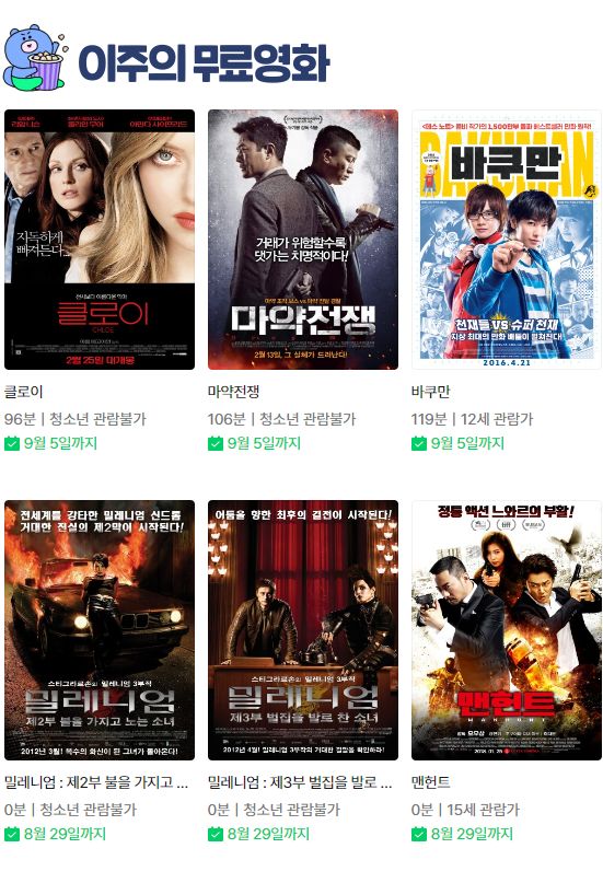 | (네이버시리즈온 무료영화) 이스케이프 플랜: 코드네임 제로, 스쿨 오브 락(樂), 아기와 나, 송어, 나는 공무원이다 등 (0) | 2024.08.09 |