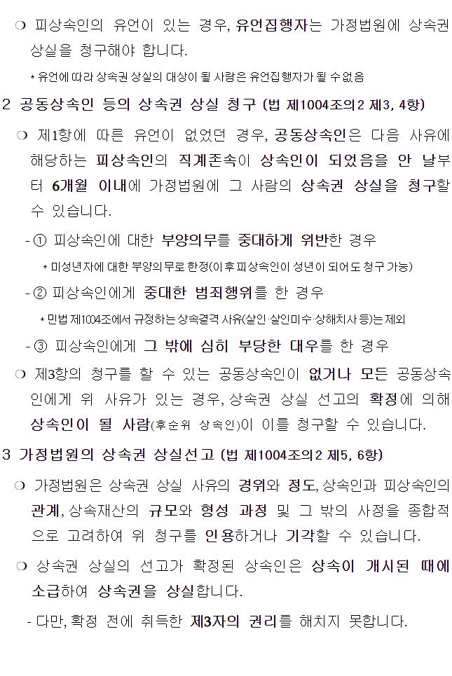 피상속인(사망한 본인)이 의사를 표명한 유언장이 없다면, 피상속인 중에서 6개월 이내에 청구해야.