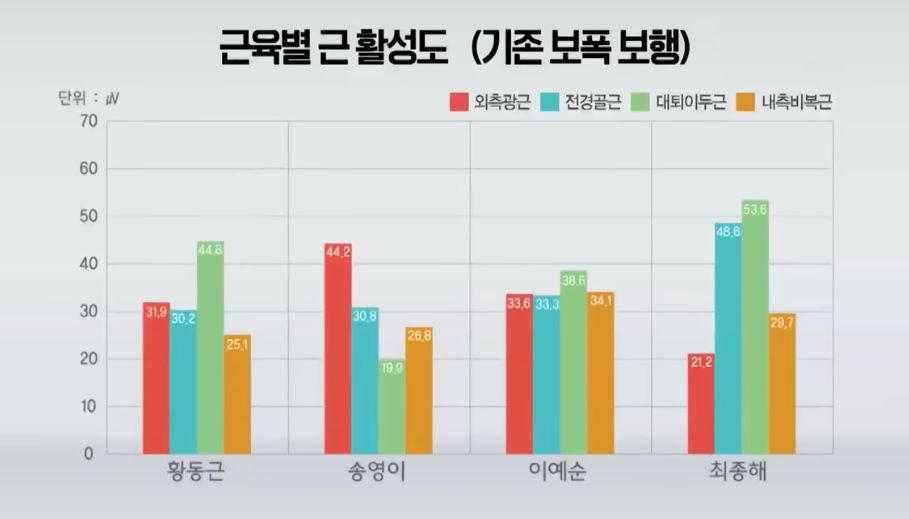 보폭넓혀걷기를 하면 그 반작용으로 이 두 근육이 발달해 바람직한 상태로 돌아온다.