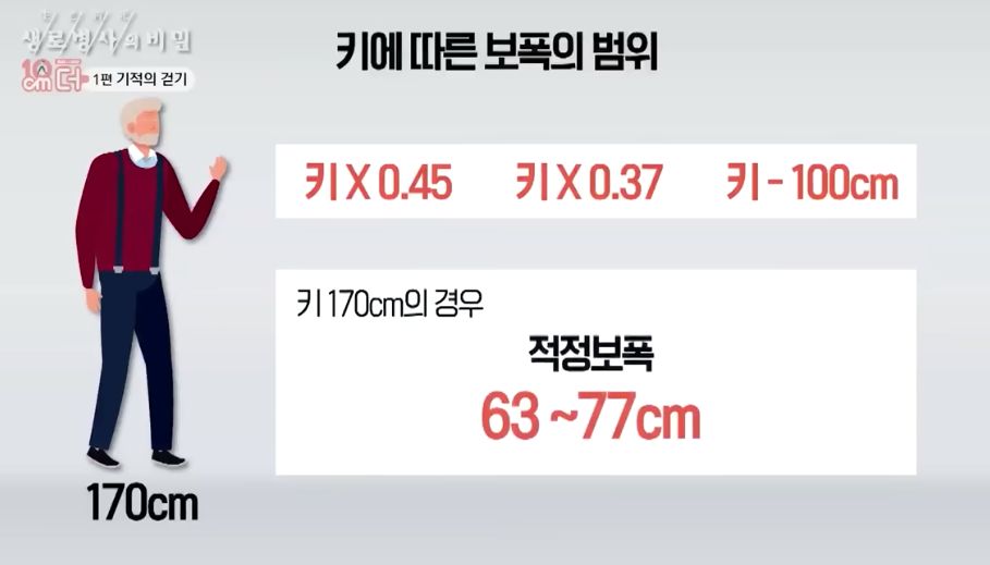 걷기운동에 관한: 10cm 더 보폭을 넓혀 빨리 걷기, KBS생로병사 2020.5.6.방송분 본문