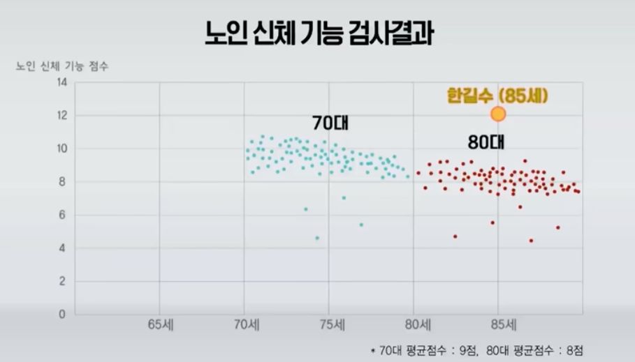 걸을 때와 섰을 때 발에 걸리는 부하도 좋다. 균형감각과 근력이 동연령대보다 좋다.
