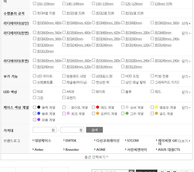 이런 식으로 체크하면 보입니다. 제가 찾아봤을 때는 1개 빼고 전부 6만원을 넘었습니다. 그리고 베이가 많은 케이스도 가이드는 일부만 제공하기도 합니다. 제일 싼 케이스는 전형적인 종류지만 값싼 게 마음에 들었고, 6만원대부터는 베이가 많으면 중간에 하나씩은 비워둘 때 환기가 되거나, 하드베이 사이에 바람이 통할 공간이 있으니 그것도 괜찮습니다. 대신 케이스 자체는 크지만. 몇 개 클릭해보니 유통사에서 단종한 것들이군요.
