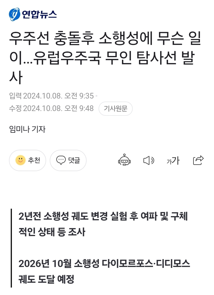 ㅡ 아마 지구에 끼칠 위험을 최소화하기 위해서겠지만 소행성의 위성에 대고 충돌실험