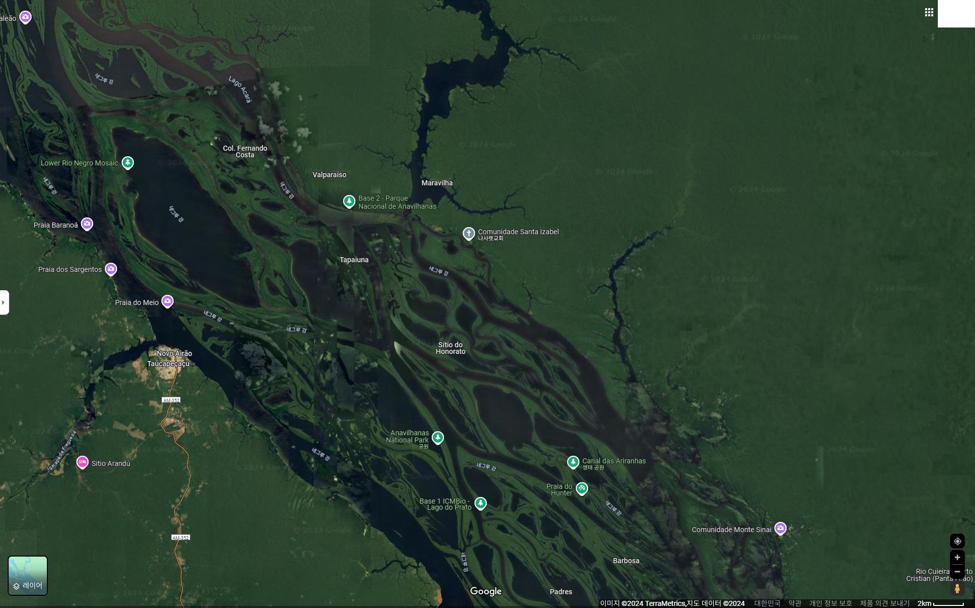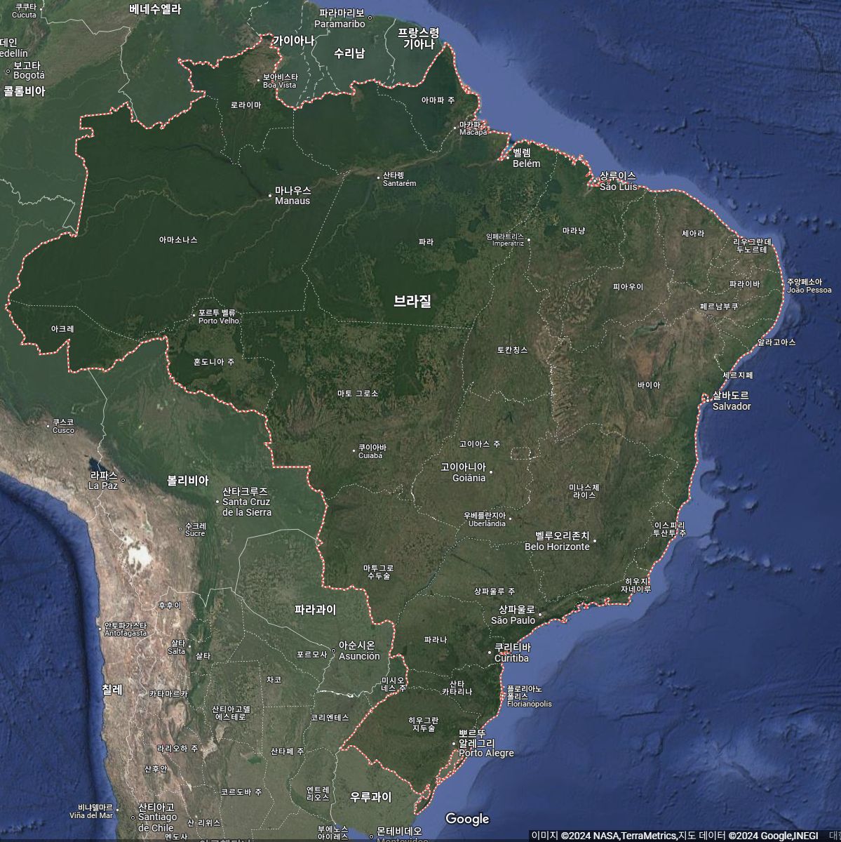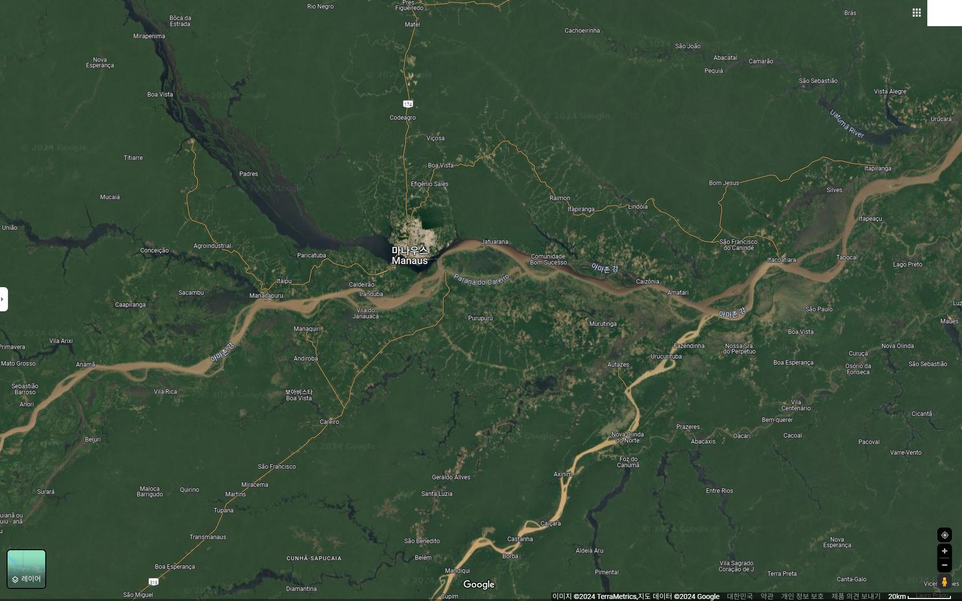 브라질의 북서쪽, 마나우스쪽을 보죠.