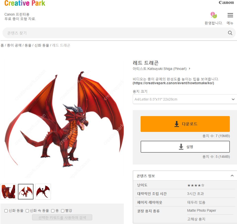 Canon Creative Park: 캐논 프린터를 사용한 종이공작(종이모형) 자료 사이트 본문