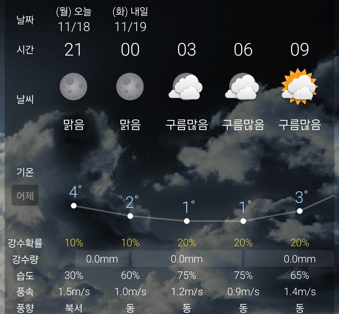 2024.11.17.밤에 이어 18일 밤도 기온 영하 (19일 밤도 아마 0도 근처) 본문