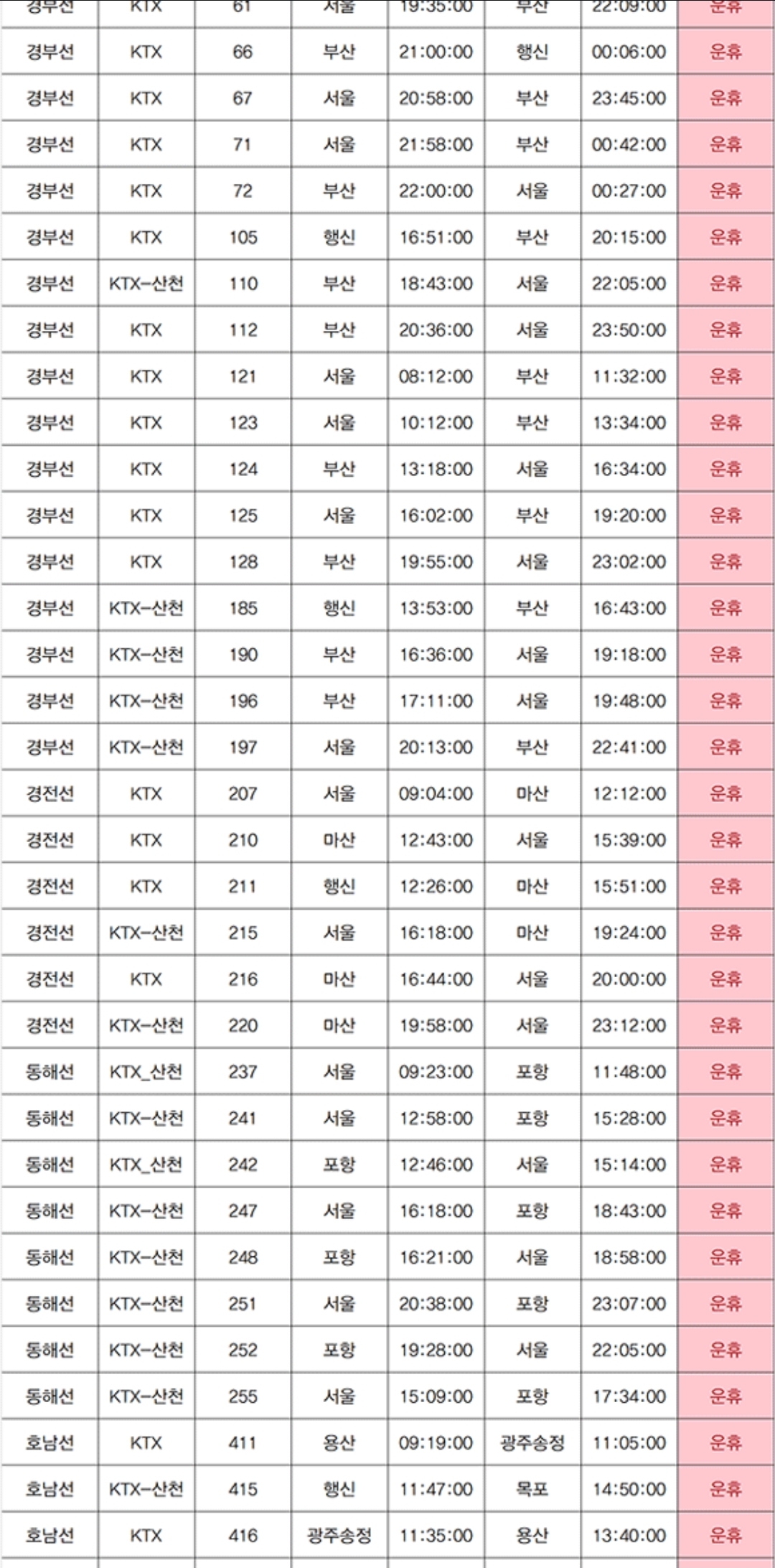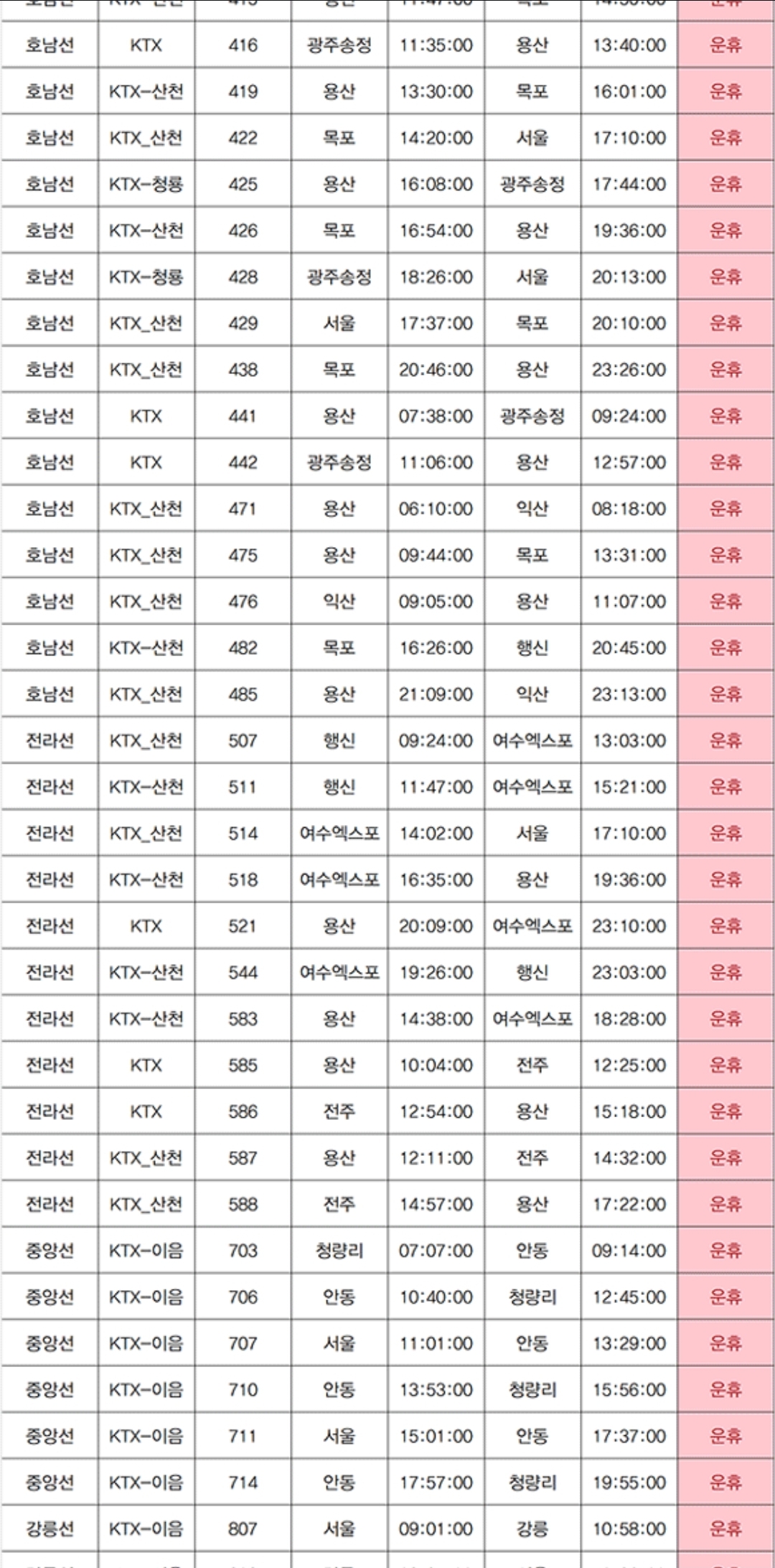 혹시 예약열차가 운휴노선인지 확인해보세요.