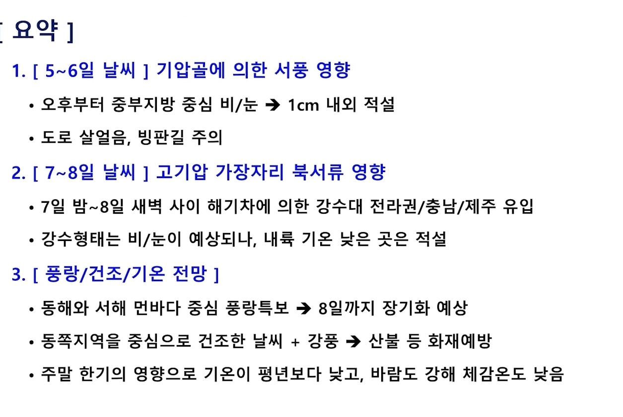 일부 스샷입니다. 더 많은 내용과 설명이 나오니 기상청 영상을 보세요.