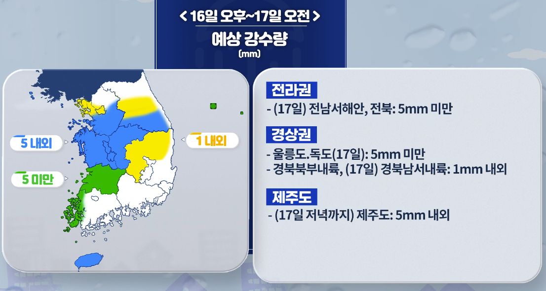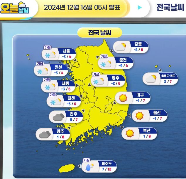 [오늘날씨] 중부지방 늦은 오후부터 비/눈 점차 내려요! 12월 16일 5시 기준