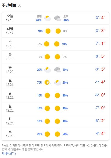 2024.12.17.화~ 12.25.수(성탄절): 일기예보: 오늘 밤 눈/비, 본문